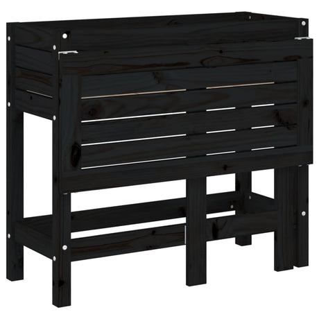 Garden Planter with Folding Tabletop Black Solid Wood Pine