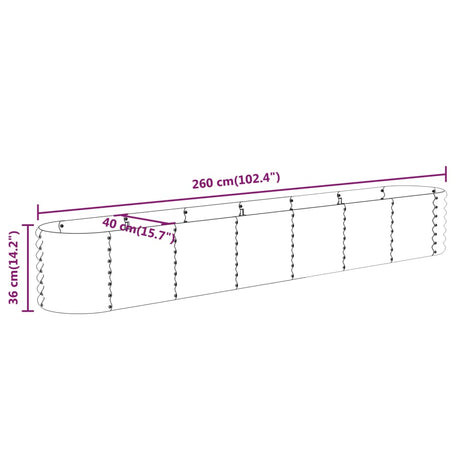 Garden Raised Bed Galvanised Steel 260x40x36 cm Silver