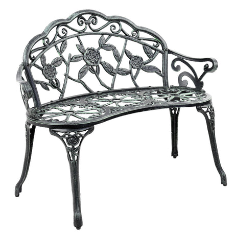 Gardeon Outdoor Garden Bench Seat 100cm Cast Aluminium Patio Chair Vintage Green