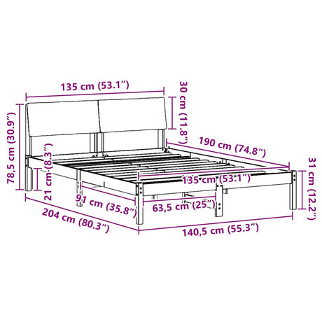 Bed frame Brown and dark grey 135 x 190 cm Solid pine wood