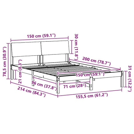 Bed frame Brown and dark grey 150 x 200 cm Solid pine wood