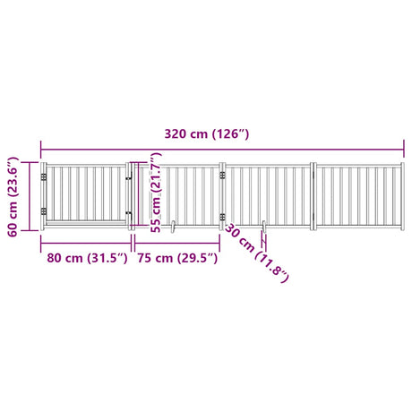 Dog Gate with Door Foldable 4 Panels 320 cm Solid Wood Fir