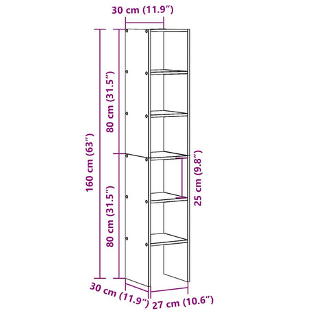 Bookcase Stackable White 30x30x80 cm Engineered Wood