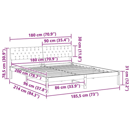 Bed frame Brown and dark grey 180 x 200 cm Solid pine wood