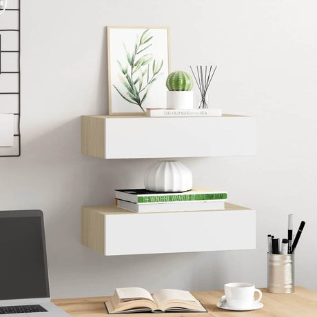 Wall Drawer Shelves 2 pcs Oak and White 40x23.5x10cm MDF