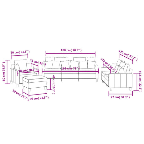 4 Piece Sofa Set with Cushions Black Faux Leather