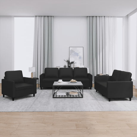 3 Piece Sofa Set with Cushions Black Faux Leather
