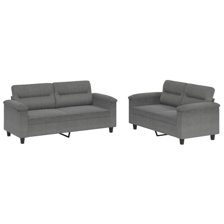 2 Piece Sofa Set with Cushions Dark Grey Microfibre Fabric