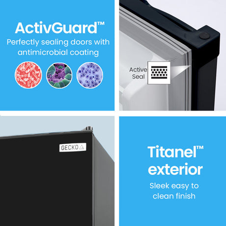 GECKO 142L Upright Portable Fridge / Freezer, 12V/24V for Motorhome and Caravan, Black