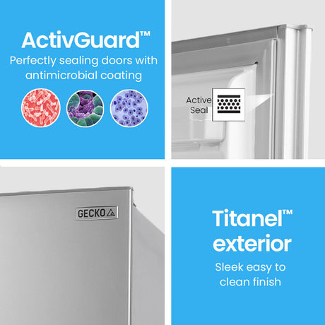 GECKO 160L Upright Portable Fridge / Freezer, 12V/24V for Motorhome and Caravan, Silver