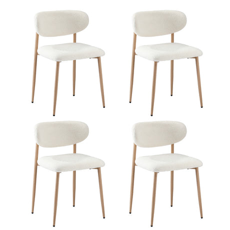 Oikiture 4x Dining Chairs Boucle Fabric Wood&White