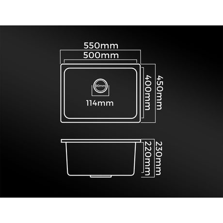 Welba Kitchen Sink 55x45cm Granite Basin Single Bowl Black