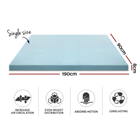 Giselle Bedding Memory Foam Mattress Topper Cool Gel 8cm Single