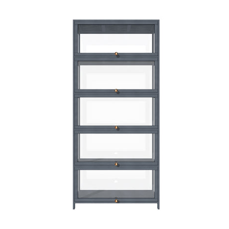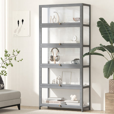 Oikiture Display Cabinet 5 Tiers Clear Door Grey