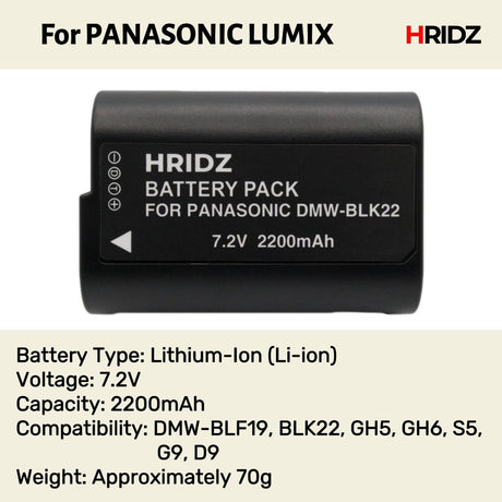 Hridz BLK22 Battery and Dual charger pack for Panasonic DMW-BLK22 LUMIX DSLR - combo-pack