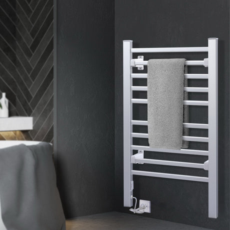 Devanti Electric Heated Towel Rail Rack 10 Bars Freestanding Clothes Dry Warmer