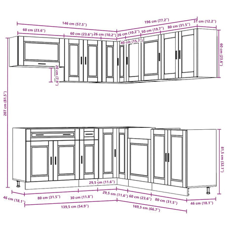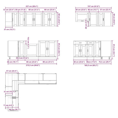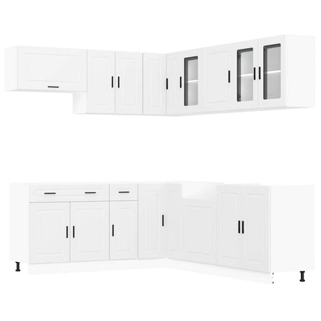 14 Piece Kitchen Cabinet Set Porto White Engineered Wood