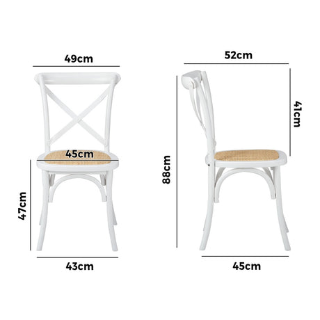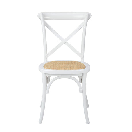 Oikiture 2PCS Crossback Dining Chair Solid Wood Ratan Seat White