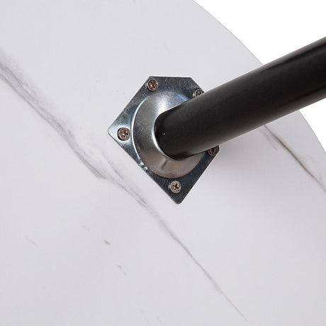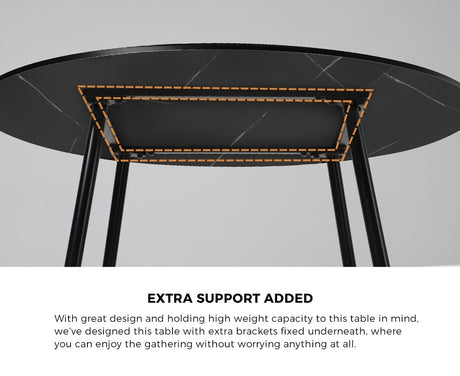Oikiture 110cm Dining Table With Marble Effect Round Wooden Black