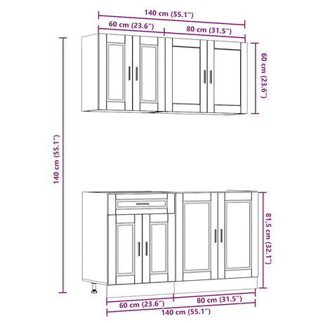 7 Piece Kitchen Cabinet Set Lyon White Engineered Wood