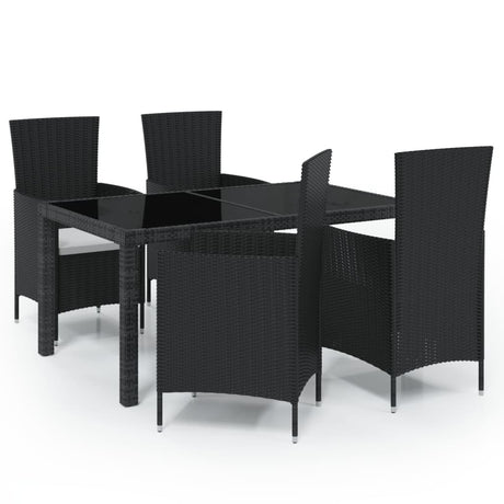 5 Piece Outdoor Dining Set with Cushions Poly Rattan Black