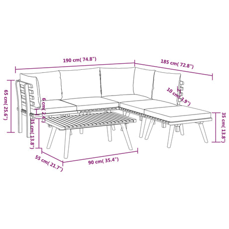 4 Piece Garden Lounge Set with Cushions Solid Acacia Wood