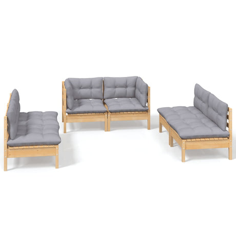 6 Piece Garden Lounge Set with Grey Cushions Pinewood