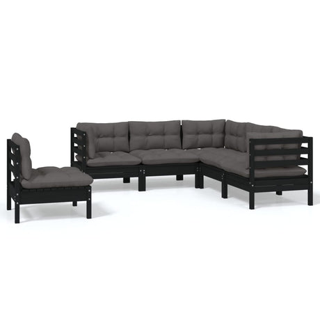 7 Piece Garden Lounge Set with Cushions Black Pinewood