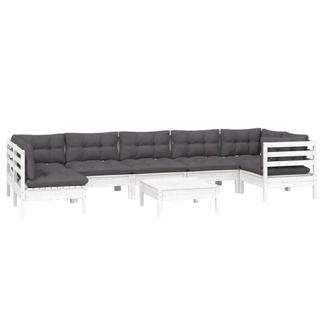 8 Piece Garden Lounge Set with Cushions White Pinewood