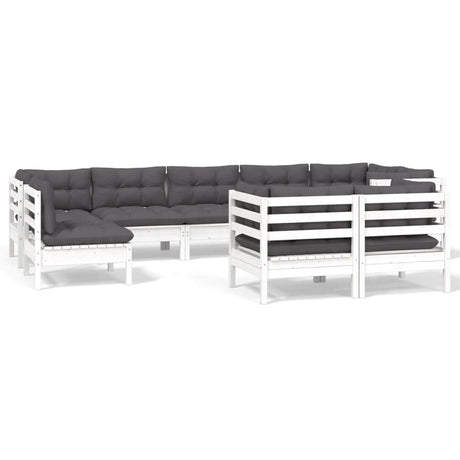 9 Piece Garden Lounge Set with Cushions White Solid Pinewood