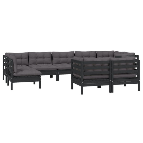 10 Piece Garden Lounge Set with Cushions Black Solid Pinewood
