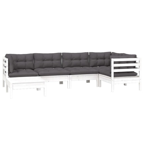 6 Piece Garden Lounge Set with Cushions White Pinewood