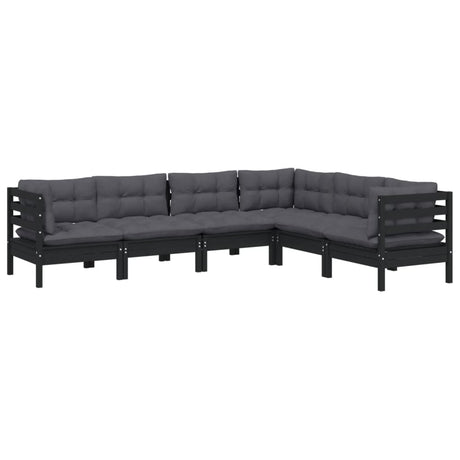 6 Piece Garden Lounge Set with Cushions Black Pinewood