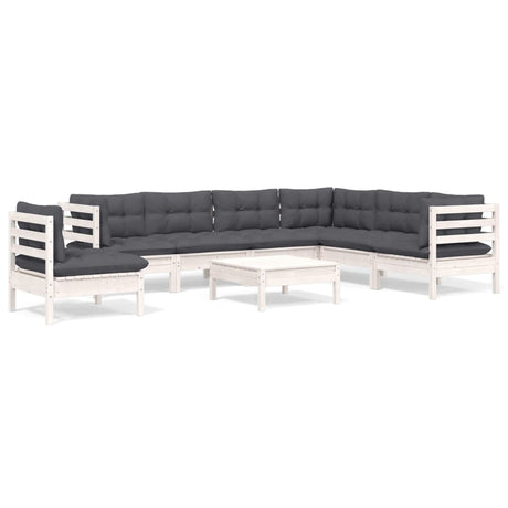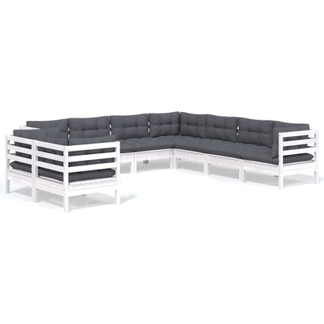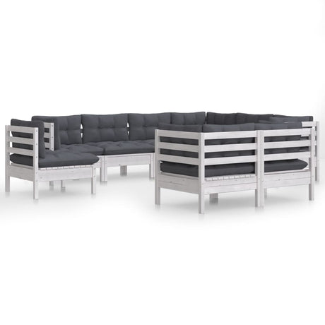 10 Piece Garden Lounge Set with Cushions White Pinewood