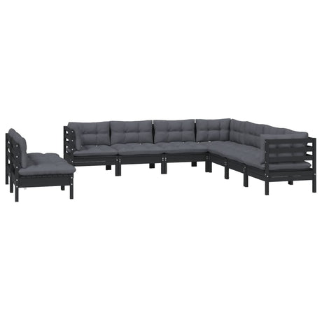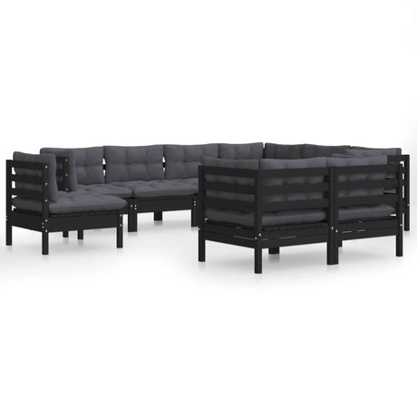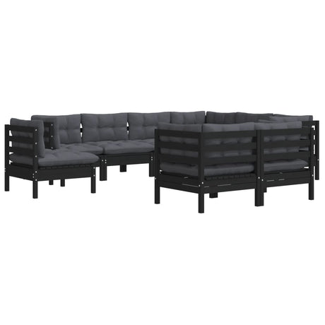 10 Piece Garden Lounge Set with Cushions Black Solid Pinewood