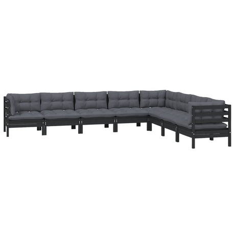 8 Piece Garden Lounge Set with Cushions Black Solid Pinewood