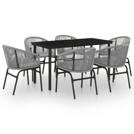7 Piece Outdoor Dining Set with Cushions Grey and Black