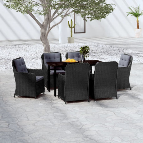 7 Piece Garden Dining Set with Cushions Black