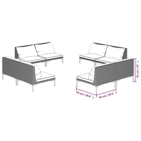 9 Piece Garden Lounge Set with Cushions Poly Rattan Dark Grey
