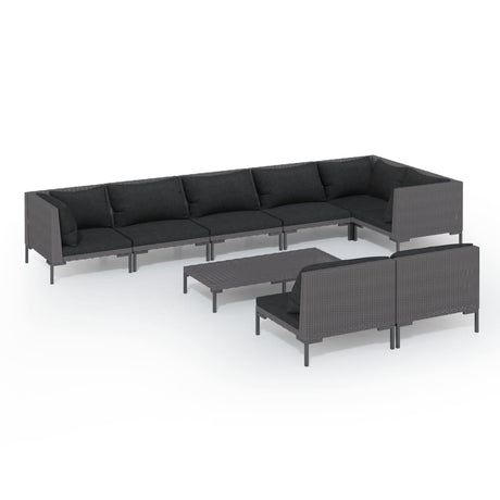 8 Piece Garden Lounge Set with Cushions Poly Rattan Dark Grey