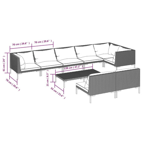 10 Piece Garden Lounge Set with Cushions Poly Rattan Dark Grey