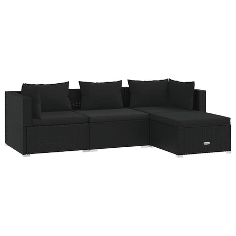 4 Piece Garden Lounge Set with Cushions Poly Rattan Black