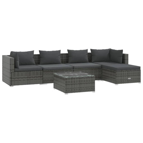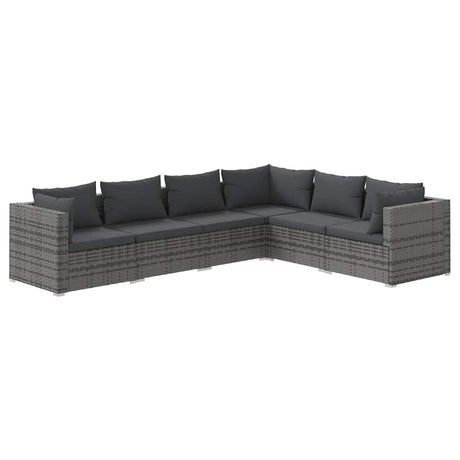 6 Piece Garden Lounge Set with Cushions Poly Rattan Grey