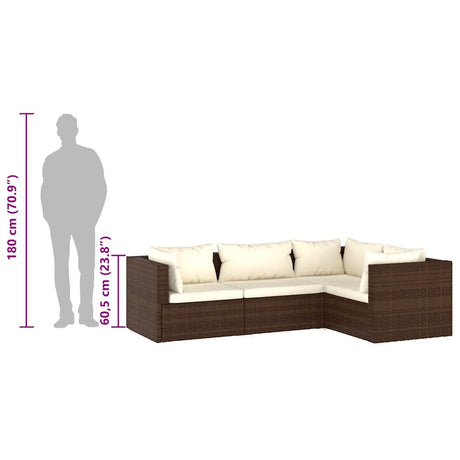 4 Piece Garden Lounge Set with Cushions Poly Rattan Brown