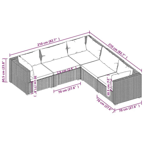 6 Piece Garden Lounge Set with Cushions Poly Rattan Brown