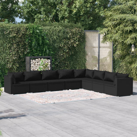 9 Piece Garden Lounge Set with Cushions Poly Rattan Black