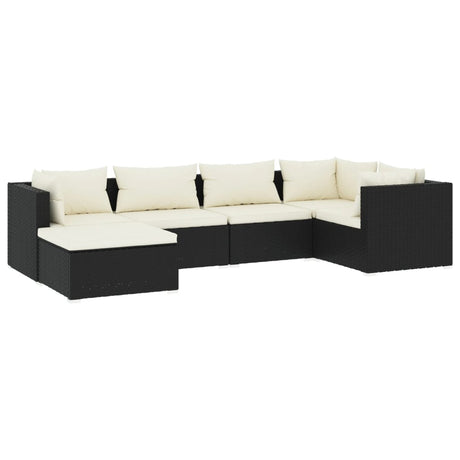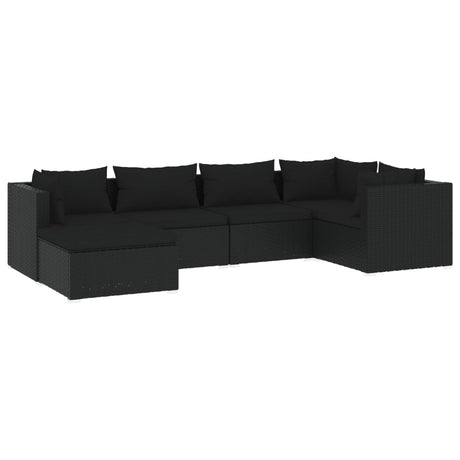 6 Piece Garden Lounge Set with Cushions Poly Rattan Black