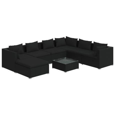 8 Piece Garden Lounge Set with Cushions Poly Rattan Black