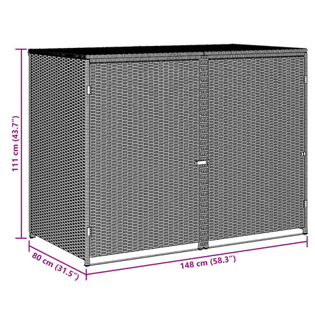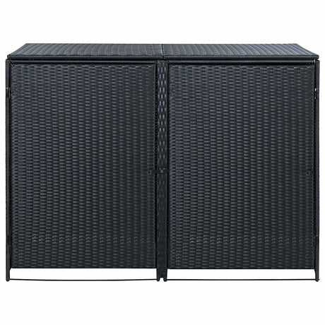 Double Wheelie Bin Shed Poly Rattan Black 148x80x111 cm
