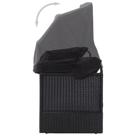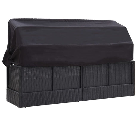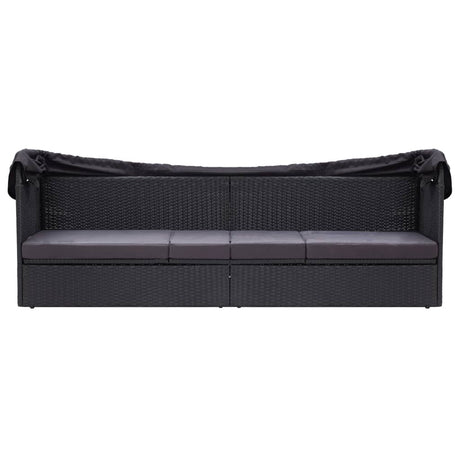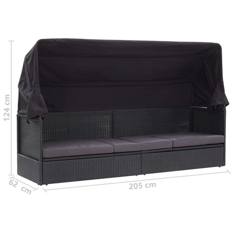 Outdoor Sofa Bed with Canopy Poly Rattan Black